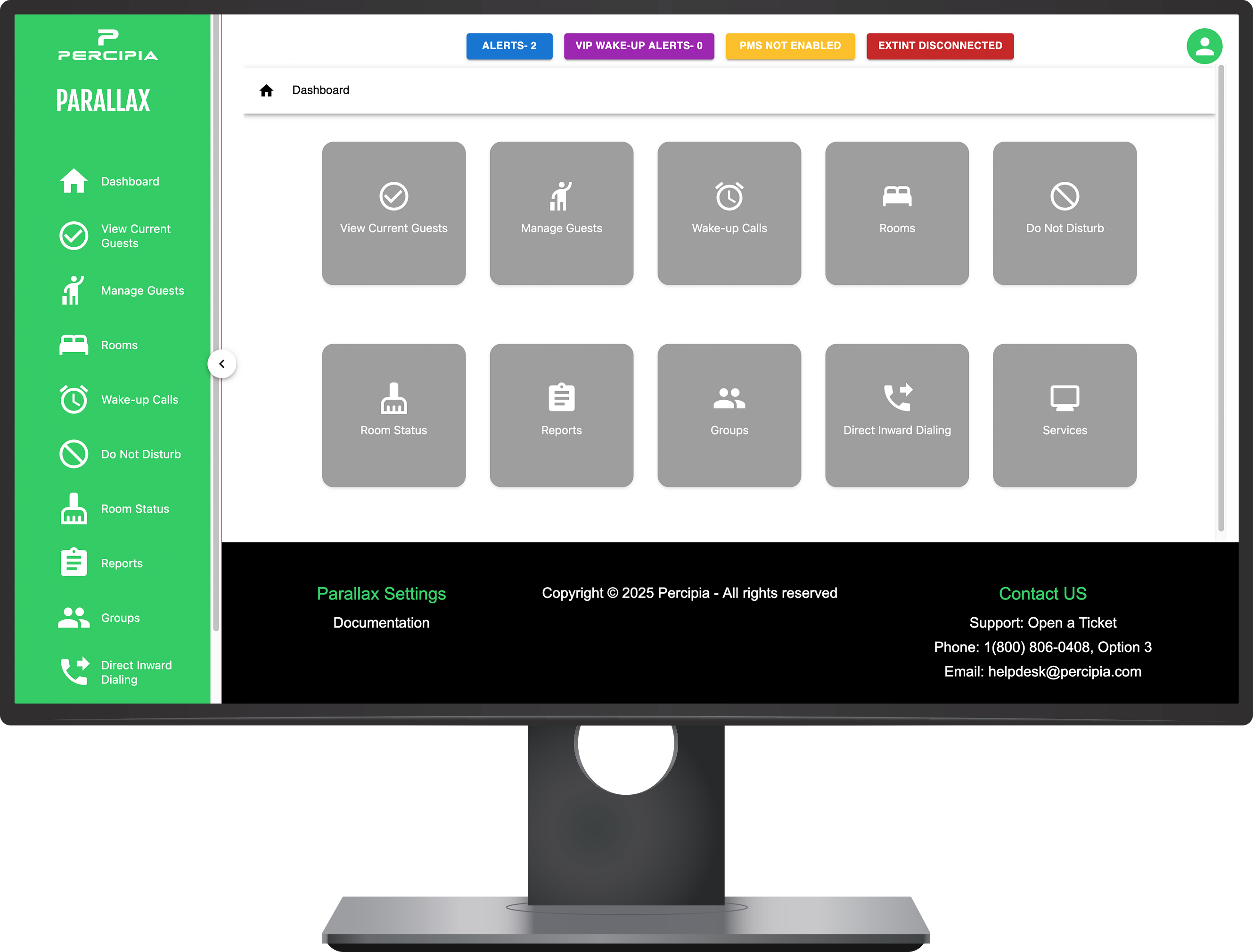 Parallax is a PMS integration software for small and large-scale hospitality businesses alike. It lets you know who is calling, with PMS integrated Caller ID, set guest wakeup calls and DND, and much more!
